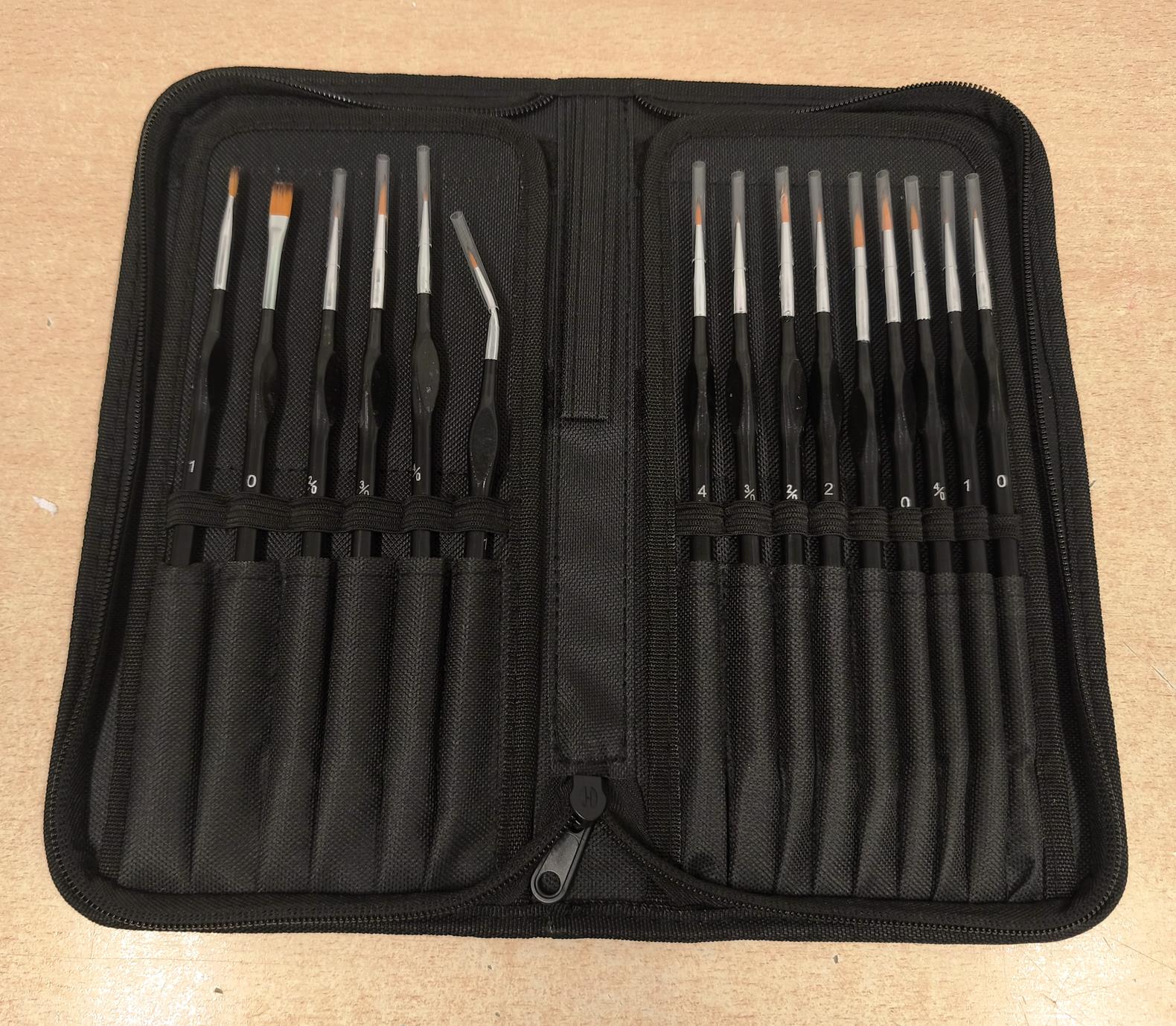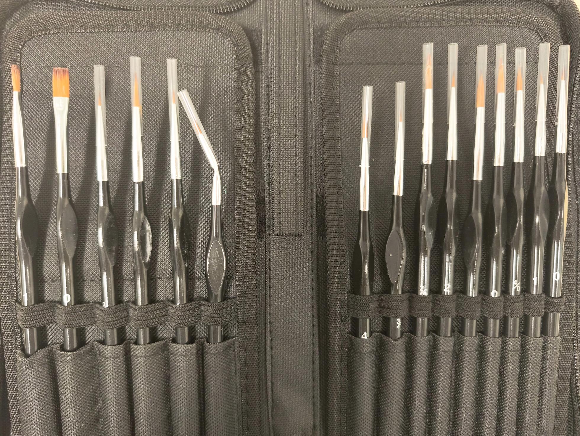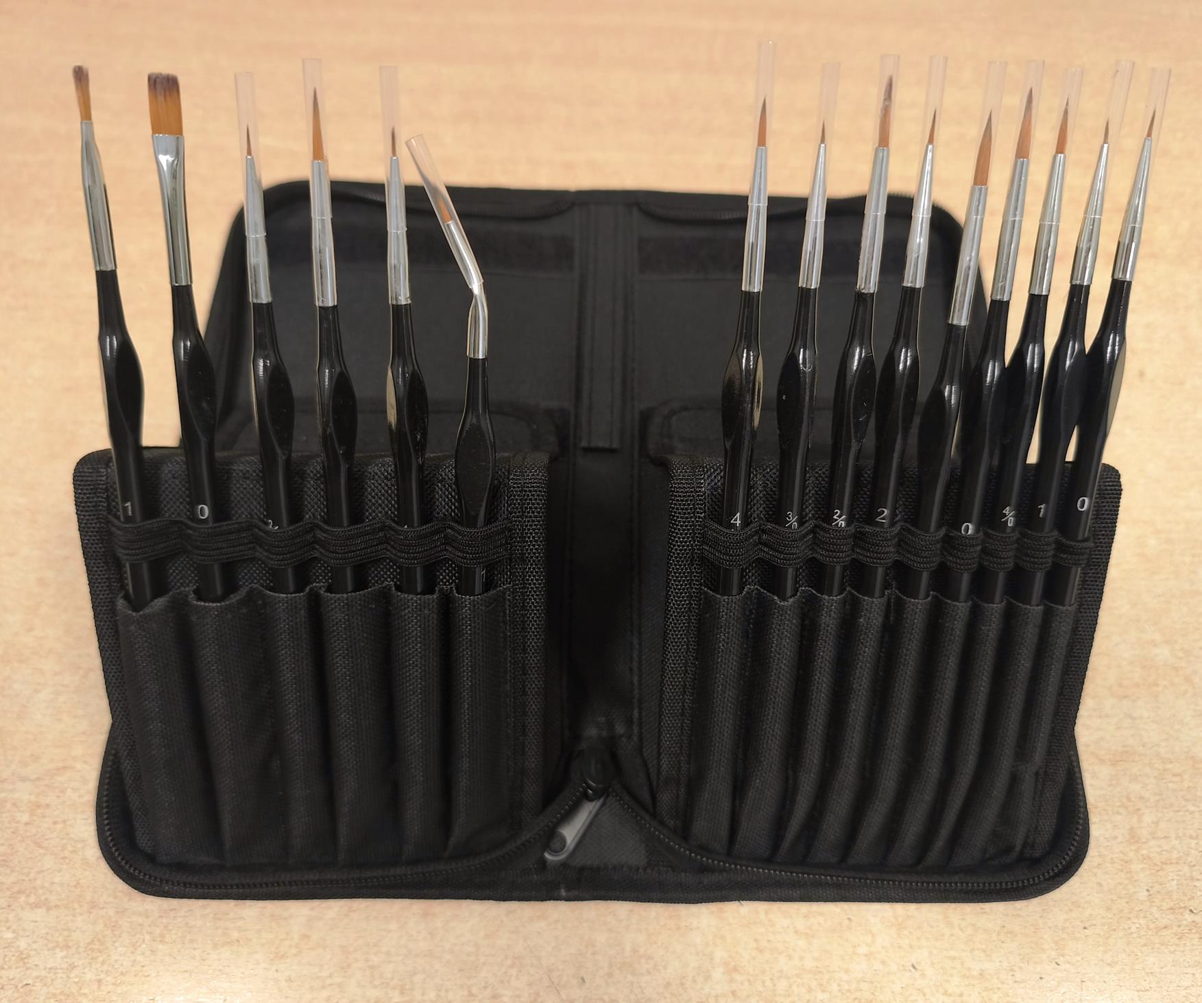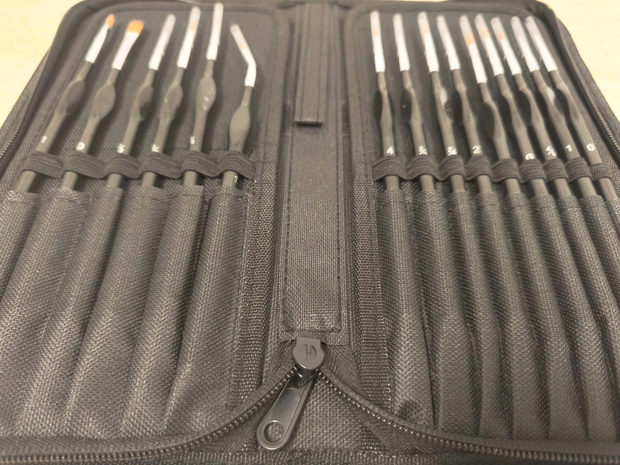 El estuche organizador mantiene los pinceles protegidos y ordenados.